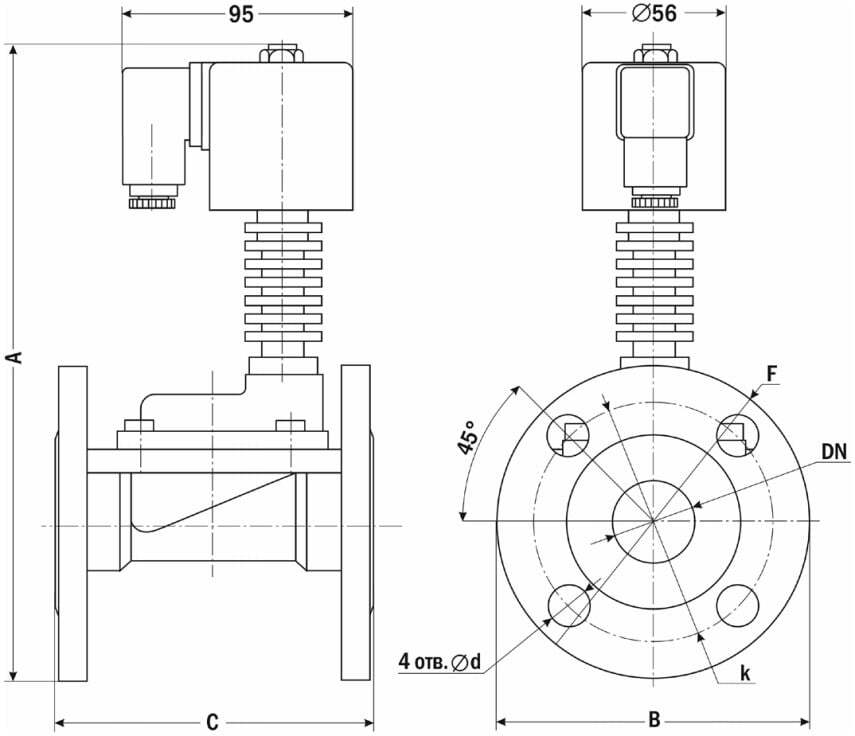Нормально закрытый соленоидный клапан – это магнитный клапан, в котором закрытое положение сохраняется, если управляющее напряжение на его индукционную катушку не подается. При подаче напряжения на катушку нормально закрытый клапан открывается и пропускает через себя поток рабочей среды. При отключении управляющего напряжения этот клапан автоматически закрывается и перекрывает поток рабочей среды в трубопроводе. При обрыве провода управляющего напряжения клапан будет закрыт.