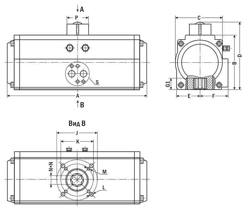 Возможность установки на привод позиционного электро пневматического регулятора ПЭР-1000Р, ручного привода-дублера РПДП, блока индикации положения БИП