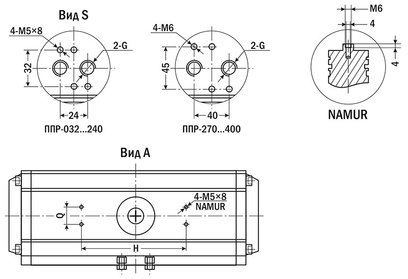 Пневмопривод одностороннего действия ППР1 для управления кранами и затворами, присоединяемыми по стандарту ISO 5211 и управляемыми по стандарту NAMURОсобенности: