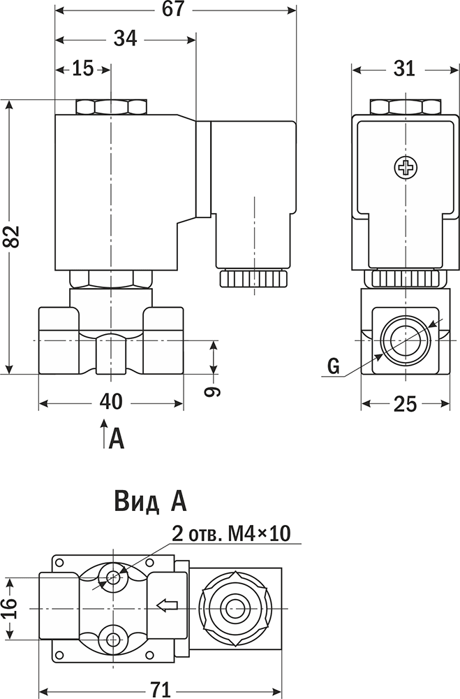 Клапан соленоидный нормально закрытый прямого действия с поршнем для управления потоком рабочей среды в трубопроводе