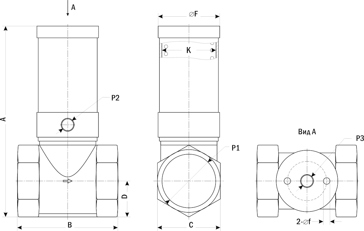 диаметр привода, К | A | B | C | D | F | f | P1 | P2 | P3 | |